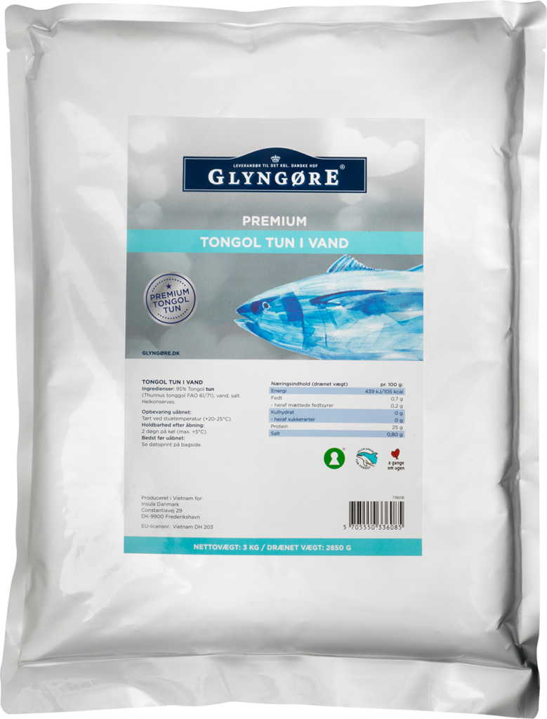 Glyngøre Premium Tongol tun kan anvendes og serveres på mange forskellige måder og er altid populær i f.eks. salater, mousse, sandwich, pålæg m.v.