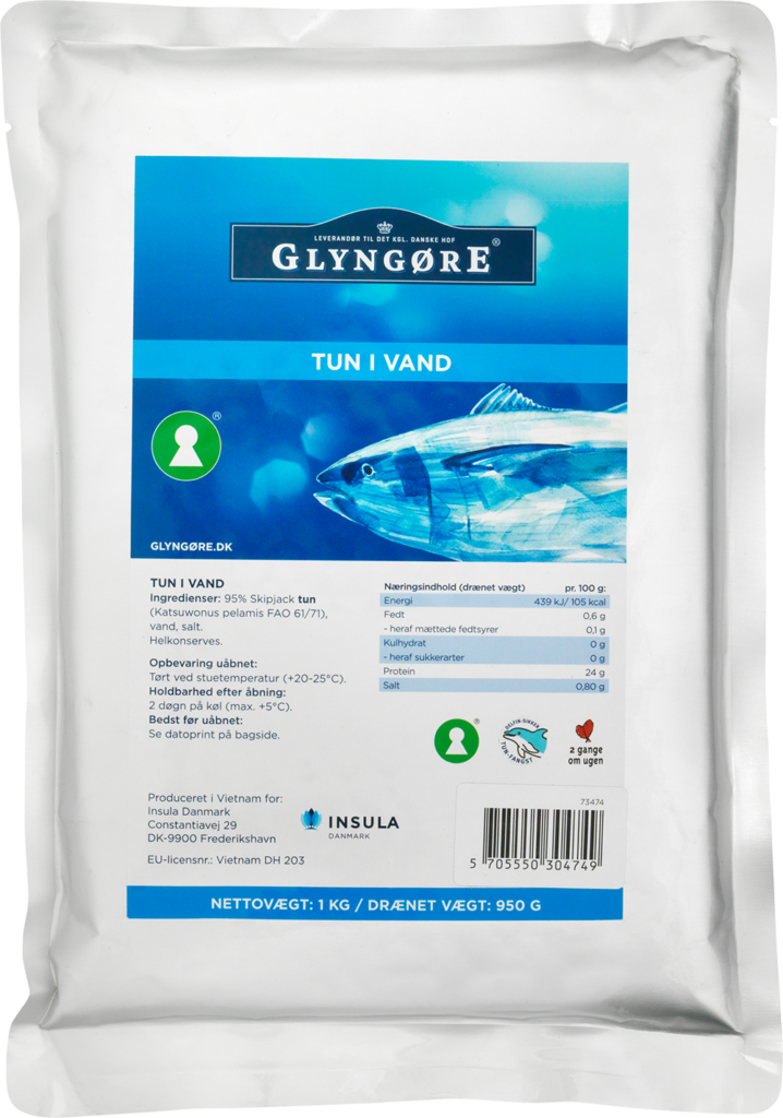 Produktet er nøglehuls- og Dolphin-safe-mærket.